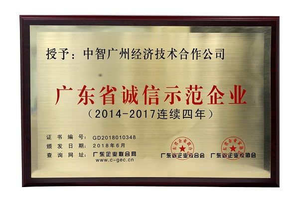 中智广州公司连续四年荣膺“广东省诚信示范企业”称号