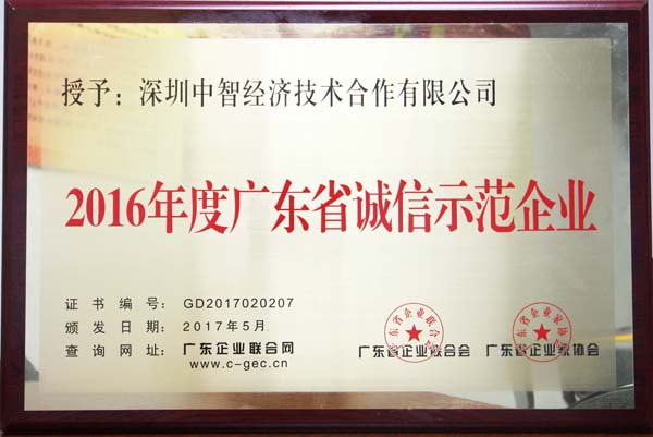 | 中智深圳公司荣膺“2016年度广东省诚信示范企业” |
